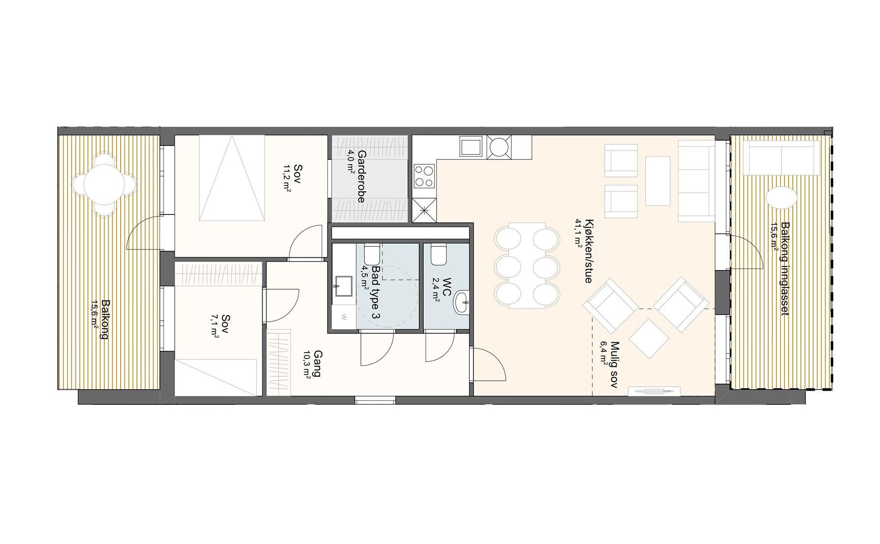 Solrike balkonger med god størrelse